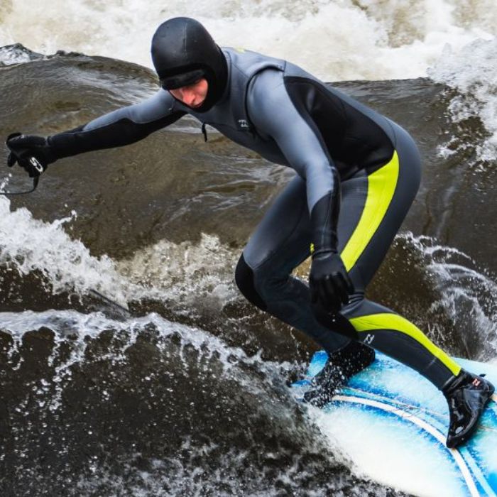 Zu den grundlegenden Voraussetzungen zählt bei den meisten Wellen eine gute Schwimmfähigkeit. Du solltest sicher und ohne Schwierigkeiten schwimmen können. Im Gegensatz zum Meer, wo man sich oft durch Weißwasser kämpfen muss, um ins Line-Up zu gelangen, entfällt dieses lästige Paddeln im Fluss.