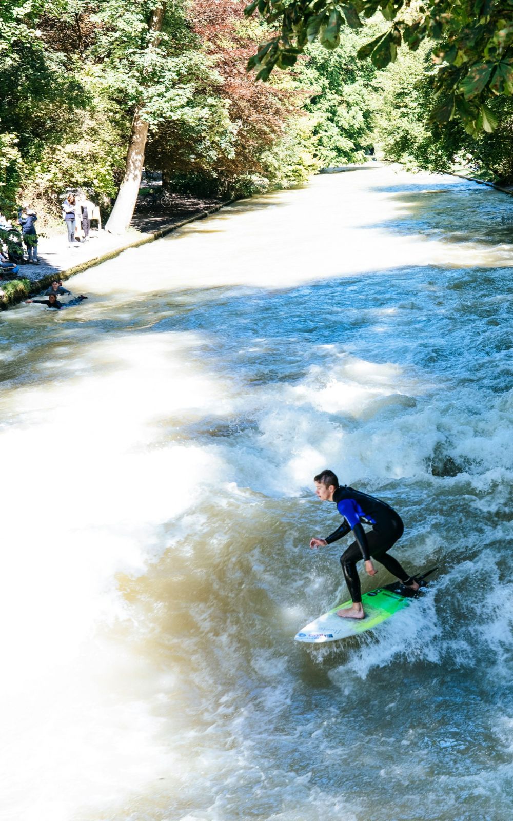 Deswegen muss man sich bei jedem neuen Surfspot unbedingt über Strömungen informieren, was man vermeiden sollte und wie man mit ihnen umgeht. Bei manchen Strömungen muss man nach unten Tauchen um zu entkommen, was anfangs erstmal nicht intuitiv ist. Bei betreuten Flusswellen ist dies einfach, dann kannst du die betreuende Person fragen. Im offenen Fluss sind die Strömungen noch oft sehr viel Stärker und Tückischer. Hier ist es zwingend erforderlich es sich mit erfahrenen Surfenden auszutauschen, bevor man selbst surfen geht.