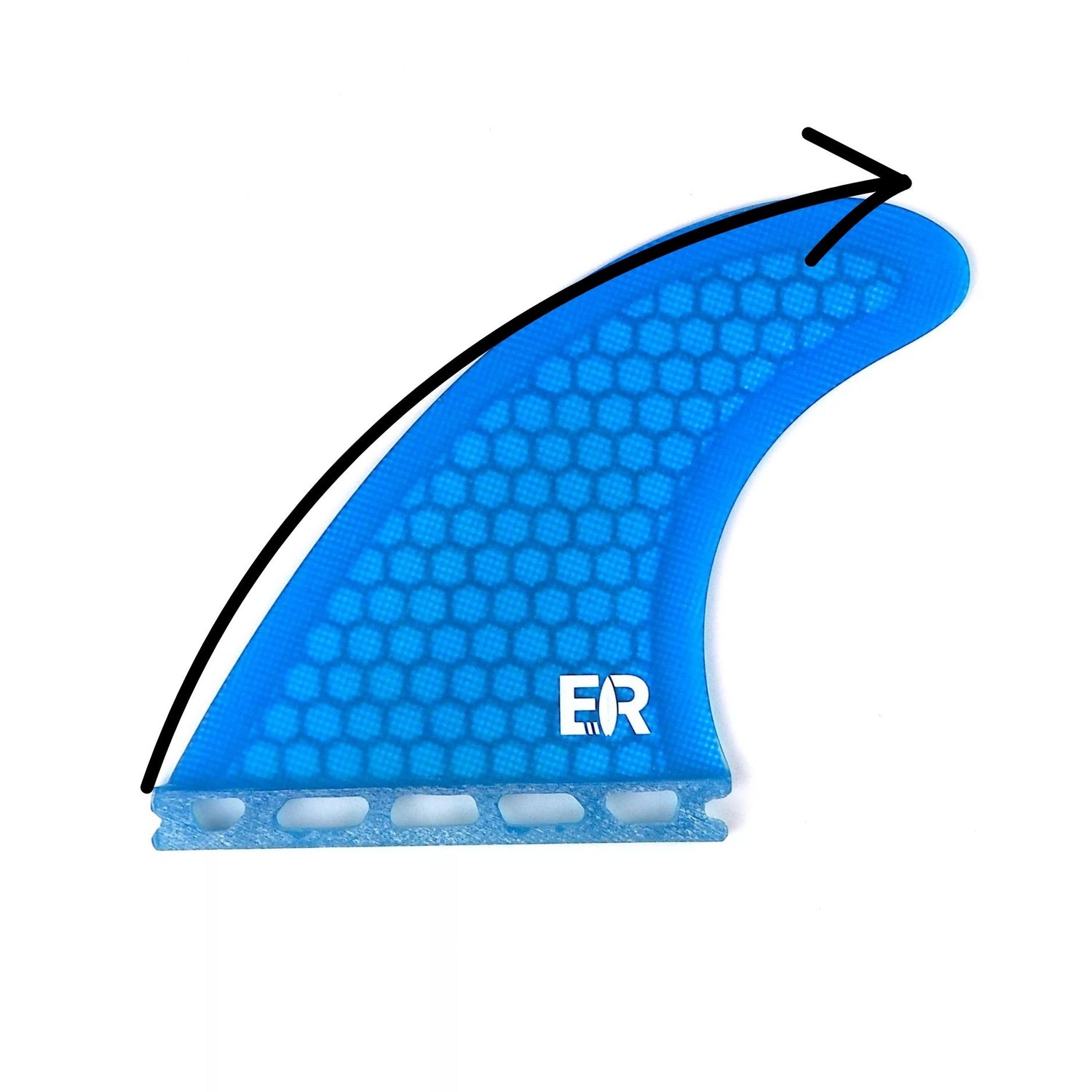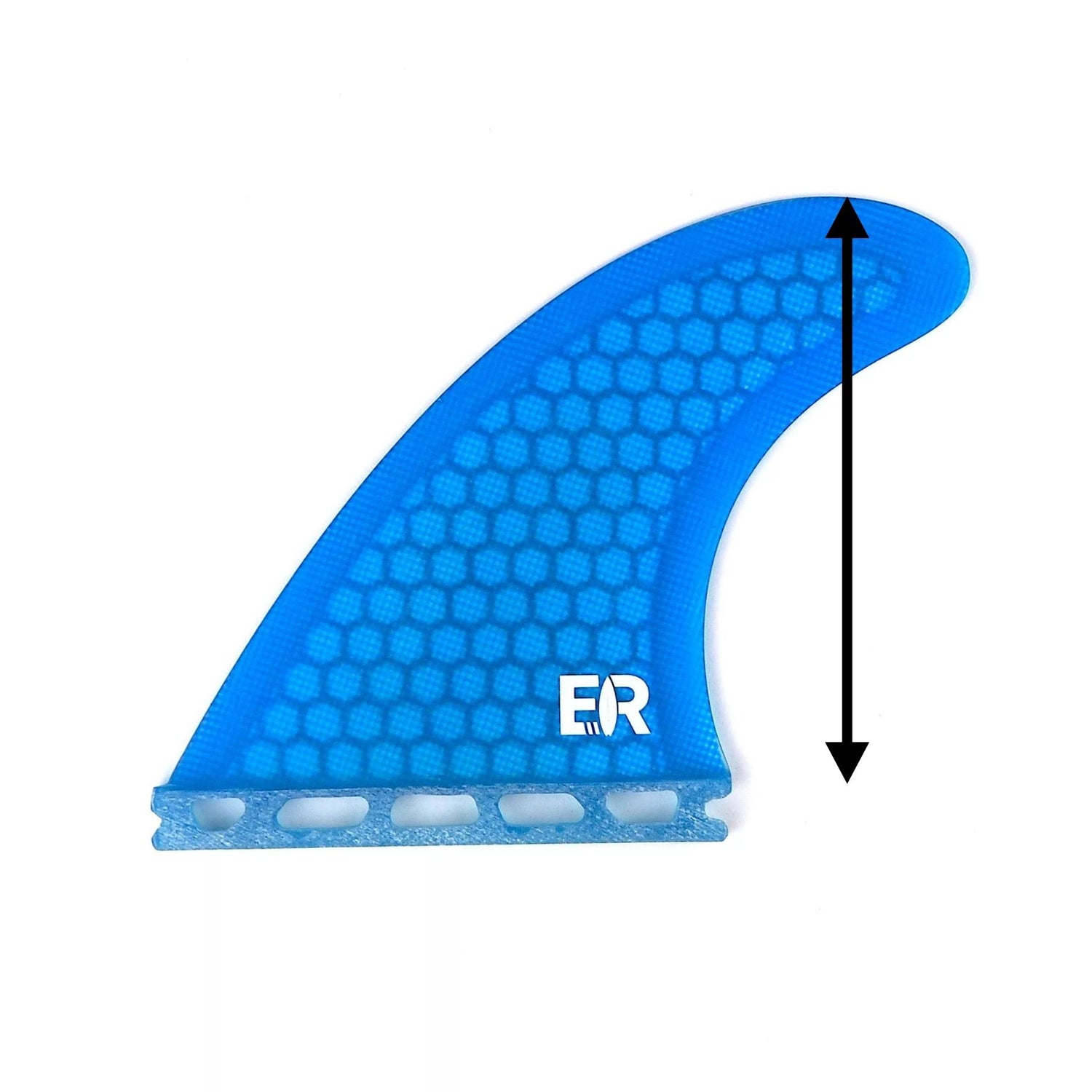 Die Höhe (Height) einer Finne beschreibt den Abstand von der Basis bis zum höchsten Punkt der Finne. Größere Finnen bieten mehr Stabilität im Wasser, was bedeutet, dass sie weniger wendig sind. Umgekehrt sind kürzere Finnen weniger stabil, was zu höherer Wendigkeit und mehr Freigabe führt.